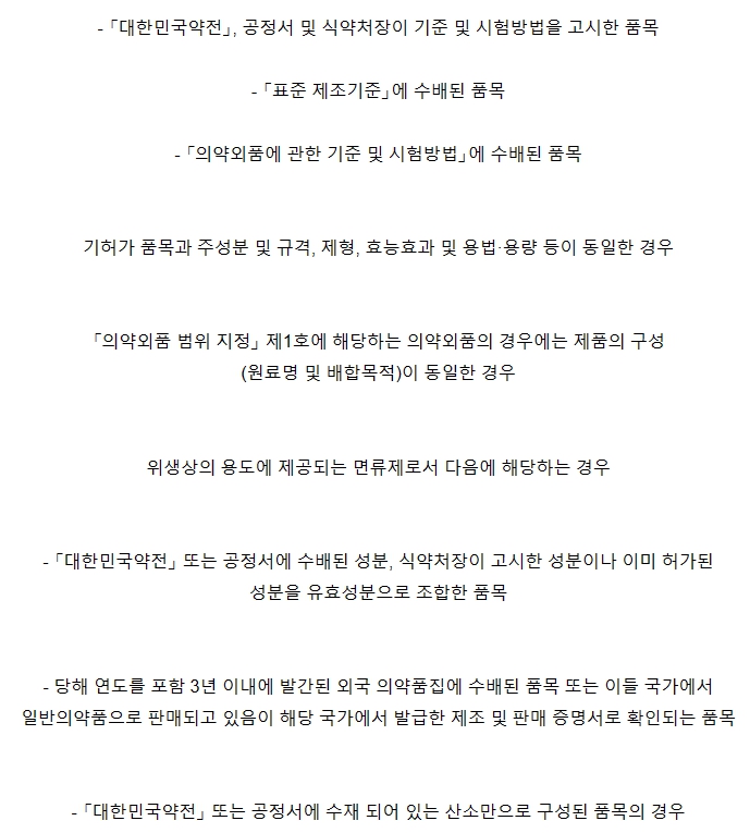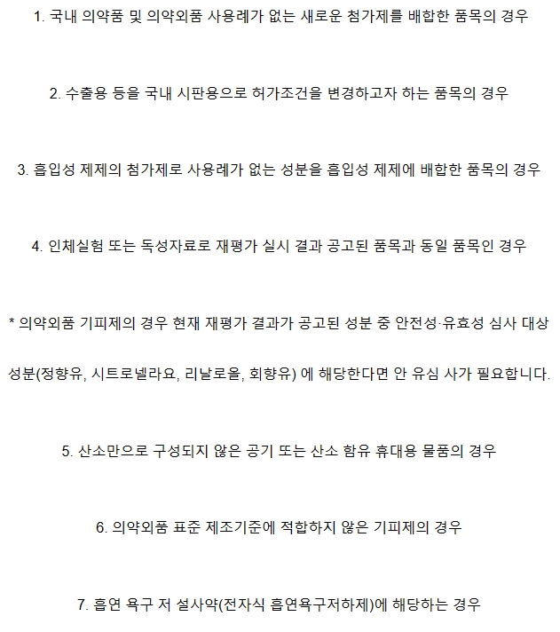 안전성 및 유효성 심사대상 의약외품 제외 대상